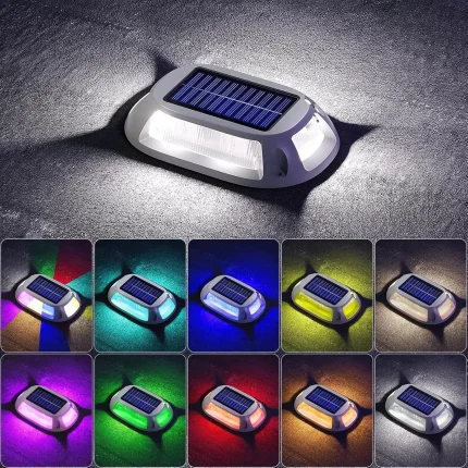 Luces solares para entrada, luces de muelle marinas, 9 colores en 1, marcadores de entrada de aluminio, luces de cubierta con energía Solar para exteriores, impermeables