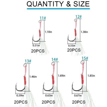 100 unids/caja anzuelo de asistencia de plantilla fundida señuelo de Jigging lento anzuelos de pesca de lubina anzuelo de púas atado anzuelo con pluma anzuelo de pesca de mar