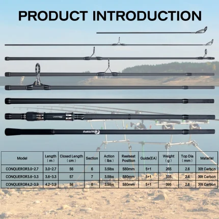 Poder de pesca: 1-6 libras (0,45-2,72 kg) Tipo de agarre de pesca: Varilla giratoria Producto químico muy preocupado: Ninguno Acción: FAST Número de modelo: 2.7/3.0m