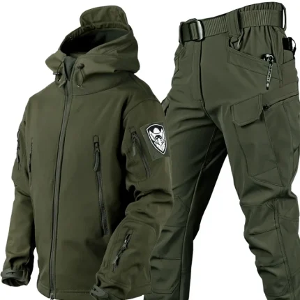 Chaqueta y pantalones impermeables con capucha a prueba de viento, carcasa suave, felpa, engrosada, pesca al aire libre, corte, resistente al desgaste, invierno, 5XL