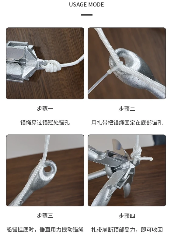 4Amplíe las cuatro garras para aumentar la fuerza de agarre, junto con su propia resistencia, para evitar eficazmente que el ancla se arrastre.
