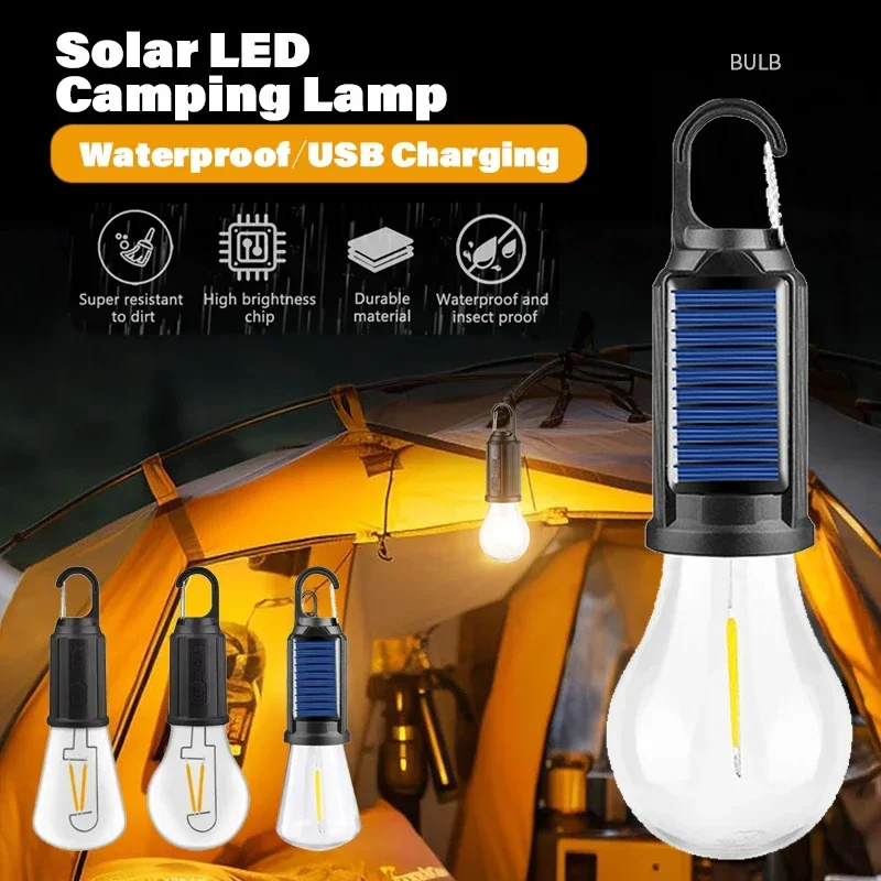 Bombillas de lámpara LED con energía Solar para exteriores, luz de Camping con carga USB, luces nocturnas portátiles, linterna impermeable, elementos esenciales para pesca