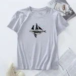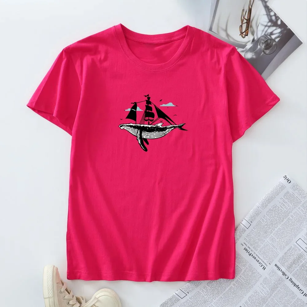 Camiseta de manga corta 100% de algodón para mujer, Tops de gran tamaño, ropa para mujer, camiseta para mujer, Camisetas estampadas de Velero de ballena