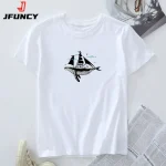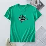 Sé el primero en valorar “Camiseta de manga corta 100% de algodón para mujer, Tops de gran tamaño, ropa para mujer, camiseta para mujer, Camisetas estampadas de Velero de ballena” Cancelar respuesta