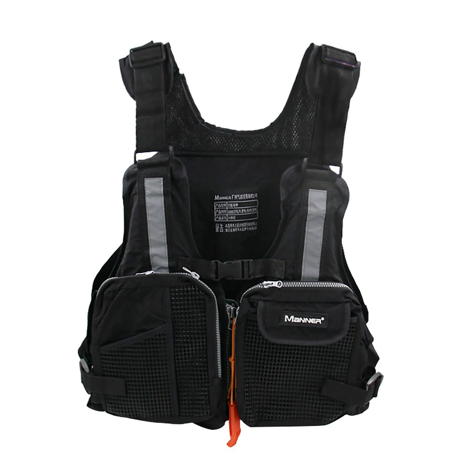 Chaleco salvavidas para adulto, chaleco de impacto, ayuda para nadar con flotabilidad y correa de seguridad ajustable, raya reflectante, dispositivo de flotación personal con múltiples bolsillos, guardia de la costa, universal aprobado con silbato