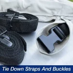 3.Sistema integrado de hebilla y correa, fácil de instalar y remolque.Diseñado para almacenamiento, amarre y viajes por carretera a largo plazo.