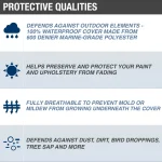 Resistente a la lluvia, puede soportar la nieve, el sol y los rayos UV, para proteger el interior y la pintura de su embarcación.