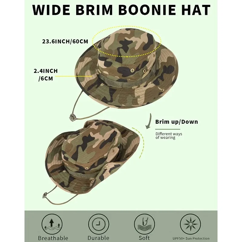 Gorro de pescador de camuflaje para entrenamiento militar, protector solar para acampar, entrenamiento táctico, transpirabilidad expandida