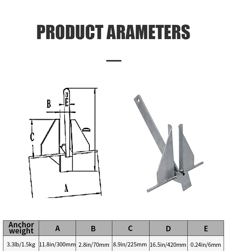KOETSU 3.3lb Danvers Marine Galvanized Fluke Ancla estilo ancla incluye para uso en kayak inflable de barro y arena