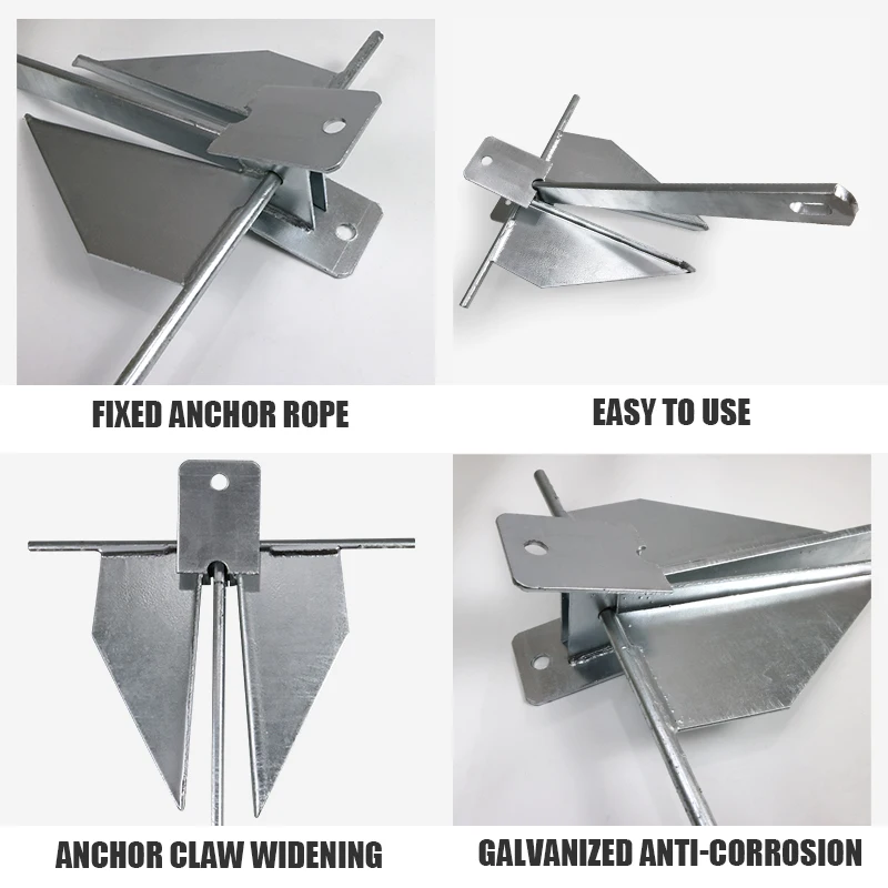 KOETSU 3.3lb Danvers Marine Galvanized Fluke Ancla estilo ancla incluye para uso en kayak inflable de barro y arena