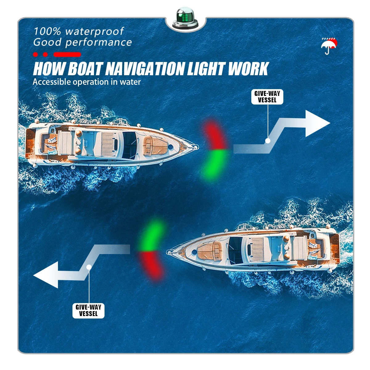 Luces de navegación LED de 12V, luces de señal de navegación marina, puerto de arco, luces laterales de estribo para yate, velero, lancha rápida, barcos de pesca