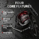 1. Large‑capacity metal skirted spool, all‑metal rocker handle, thick and flexible line gear, metal outlet ring, high‑strength main body, rock fishing, sea fishing, universal spinning wheels.