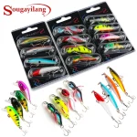 Juego de señuelos de pesca Sougayilang, 4 Uds., cebos de pesca duros Wobbler, anzuelo anticorrosión, cebo de pesca de lubina, aparejos de pesca de carpa