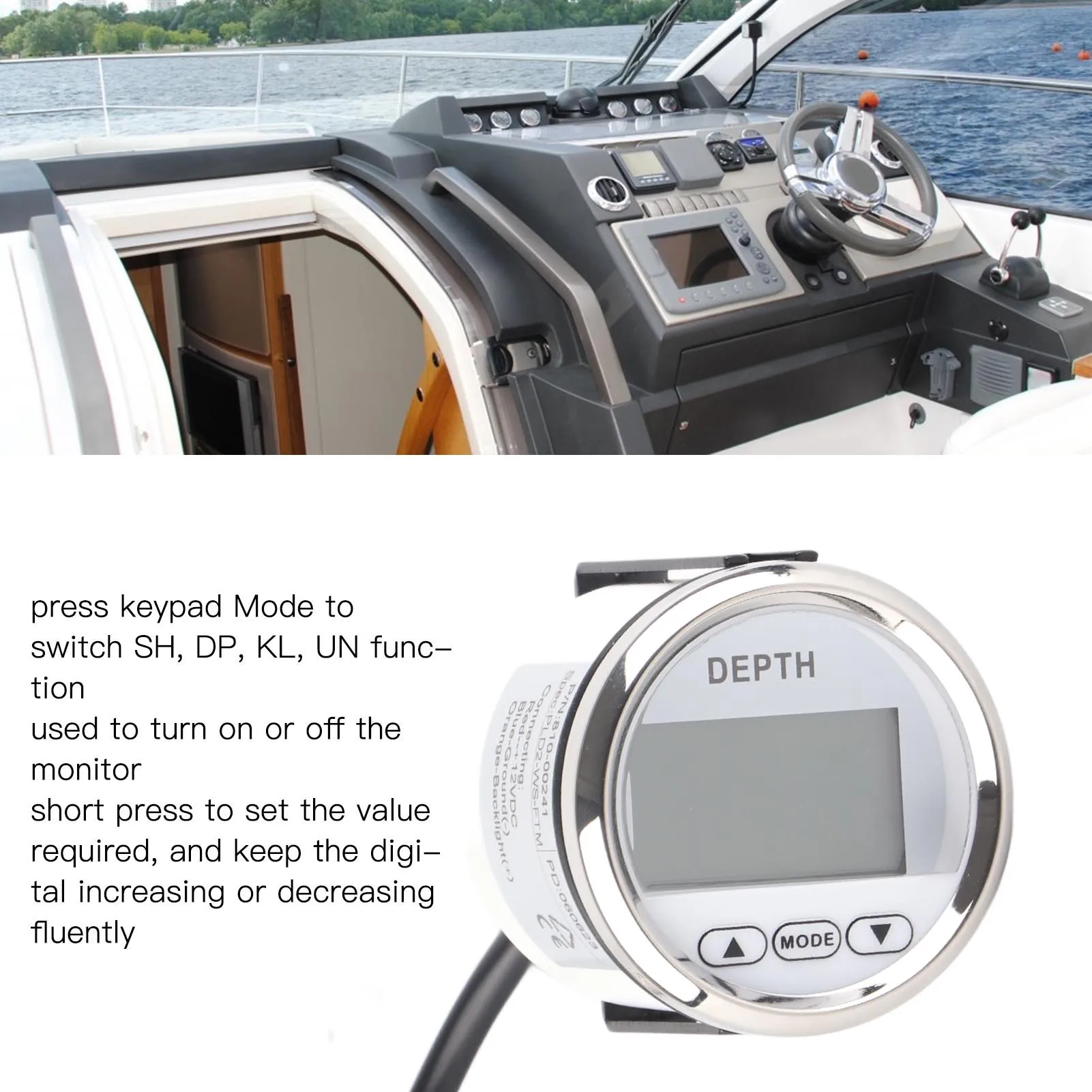 Transductor de profundidad de instrumentos marinos, sonda de profundidad, buscador de profundidad de tablero impermeable, transductor con retroiluminación blanca para yates y barcos