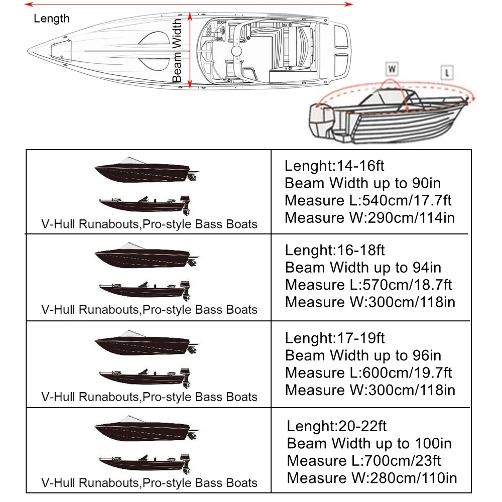 Uxcell 210D cubierta para barco de esquí y pesca 14-16 pies/16-18 pies/17-19 pies/20-22 pies casco en V Protector UV a prueba de sol cubierta de amarre para lancha rápida
